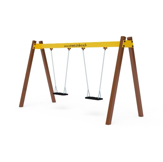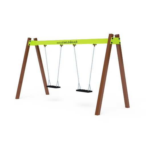 Závěsná dvojhoupačka se dvěma klasickými sedáky je vyrobena z žárově zinkované oceli, která je upravena práškovou vypalovací barvou. Spojovací materiály jsou z nerezové oceli a jsou zakryty plastovými krytkami pro zvýšení životnosti a bezpečnosti. Houpačka VH006 je certifikována dle normy ČSN EN 1176. Jako dopadovou plochu doporučujeme použít zatravňovací rohož.