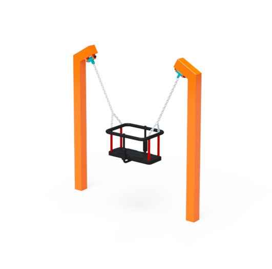 Závěsná houpačka pro nejmenší, vhodná pro mateřské školy a základní školy, je vyrobena z žárově zinkované oceli, která je upravena práškovou vypalovací barvou. Spojovací materiály jsou z nerezové oceli a zakryty plastovými krytkami pro zvýšení životnosti a bezpečnosti. Konstrukce sestavy umožňuje více sedáků za sebou podle potřeby.