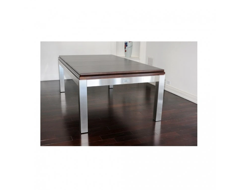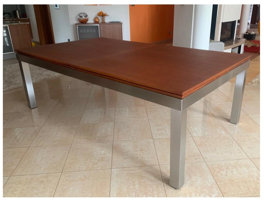 Jednoduchý svěží design a multifunkční vlastnosti, luxusní použité materiály. Díky 2–3dílné krycí desce, která je vyrobena např. z masivního dřeva v okamžiku proměníte kulečníkový stůl na prostornou jídelní či pracovní plochu. Masivní ocelový rám, silná břidlicová deska. Kapsy zabudované v rámu stolu. Plátno v ceně standartní v zelené nebo modré barvě, jiná sukna (Simonis, Z9 za příplatek).