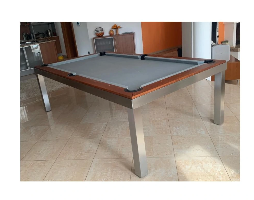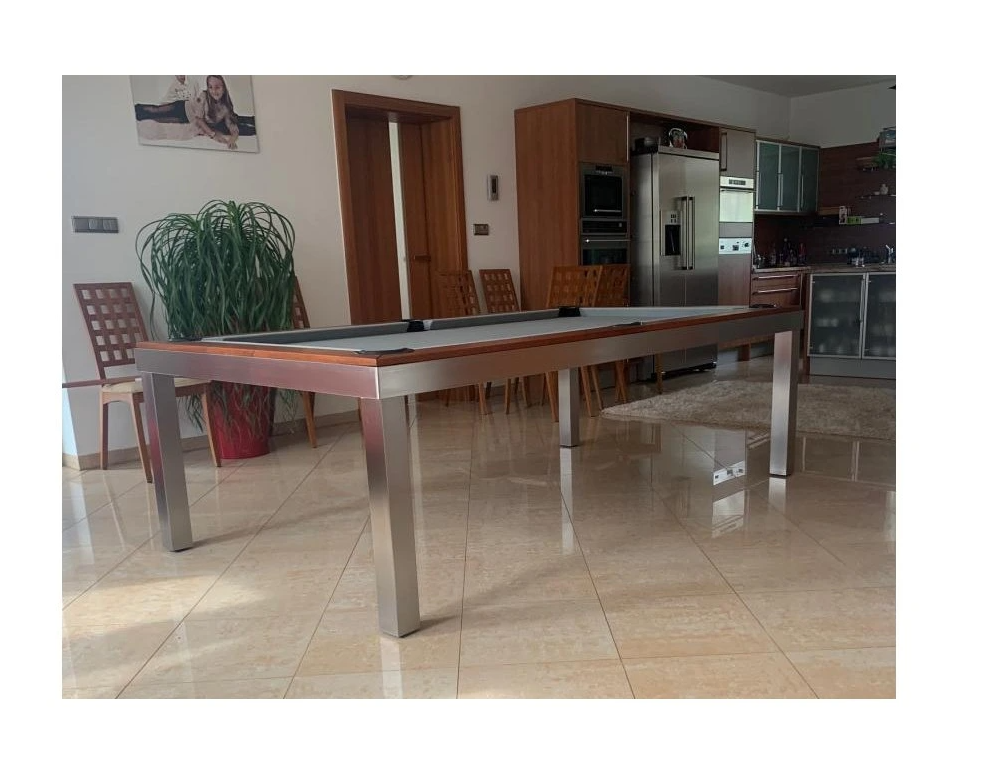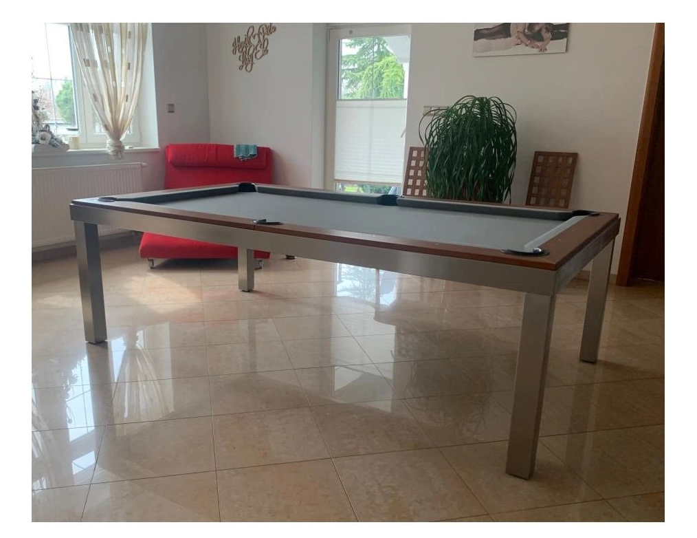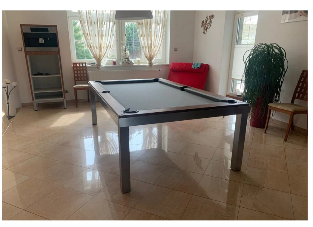 Luxusní kulečník a jídelní stůl v jednom, vyrobený z prémiového nerezu ANTICOR, je vhodný nejen do interiéru, ale i do venkovních prostor. Tento výjimečný stůl se stane ozdobou a dominantou každého prostoru, ať už jej umístíte do moderního bytu, stylové herny nebo zahradního posezení.