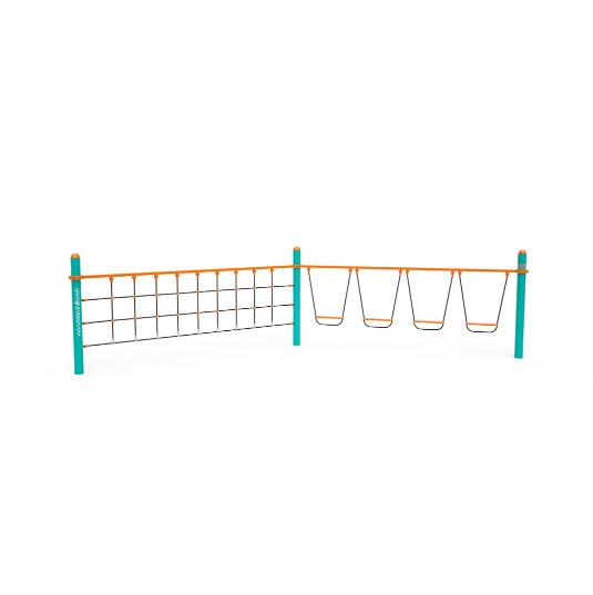 Opičí dráha vytvořená kombinací dvou částí. Svislá lanová síť prověří sílu rukou každého dítěte a svisle zavěšené stupačky dětem ukážou, jaké to je, když nestojí nohama na pevné zemi – zábavné, ale zároveň náročné.