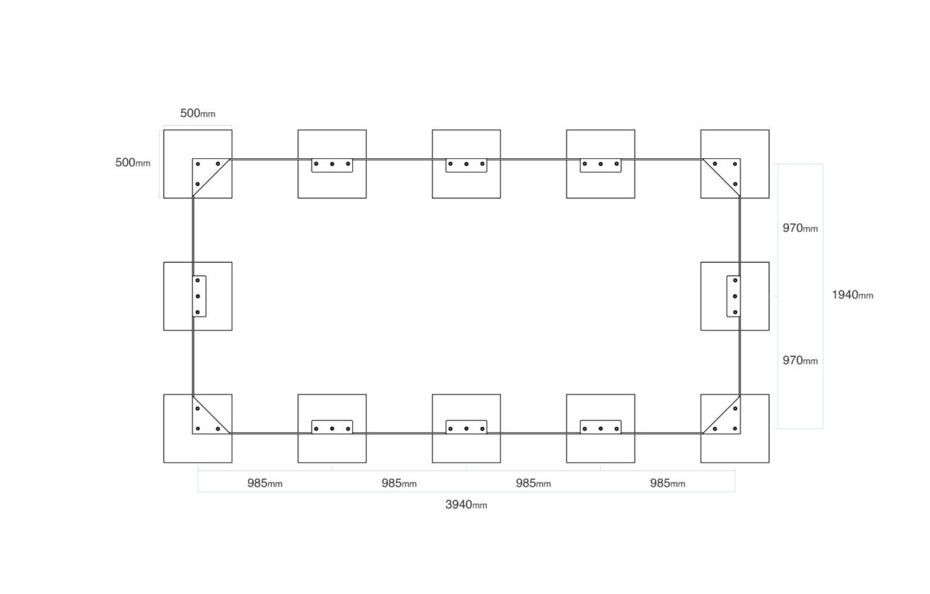 Rozměry prvku: 4,1 × 2,1 × 0,3 m (D × Š × V)