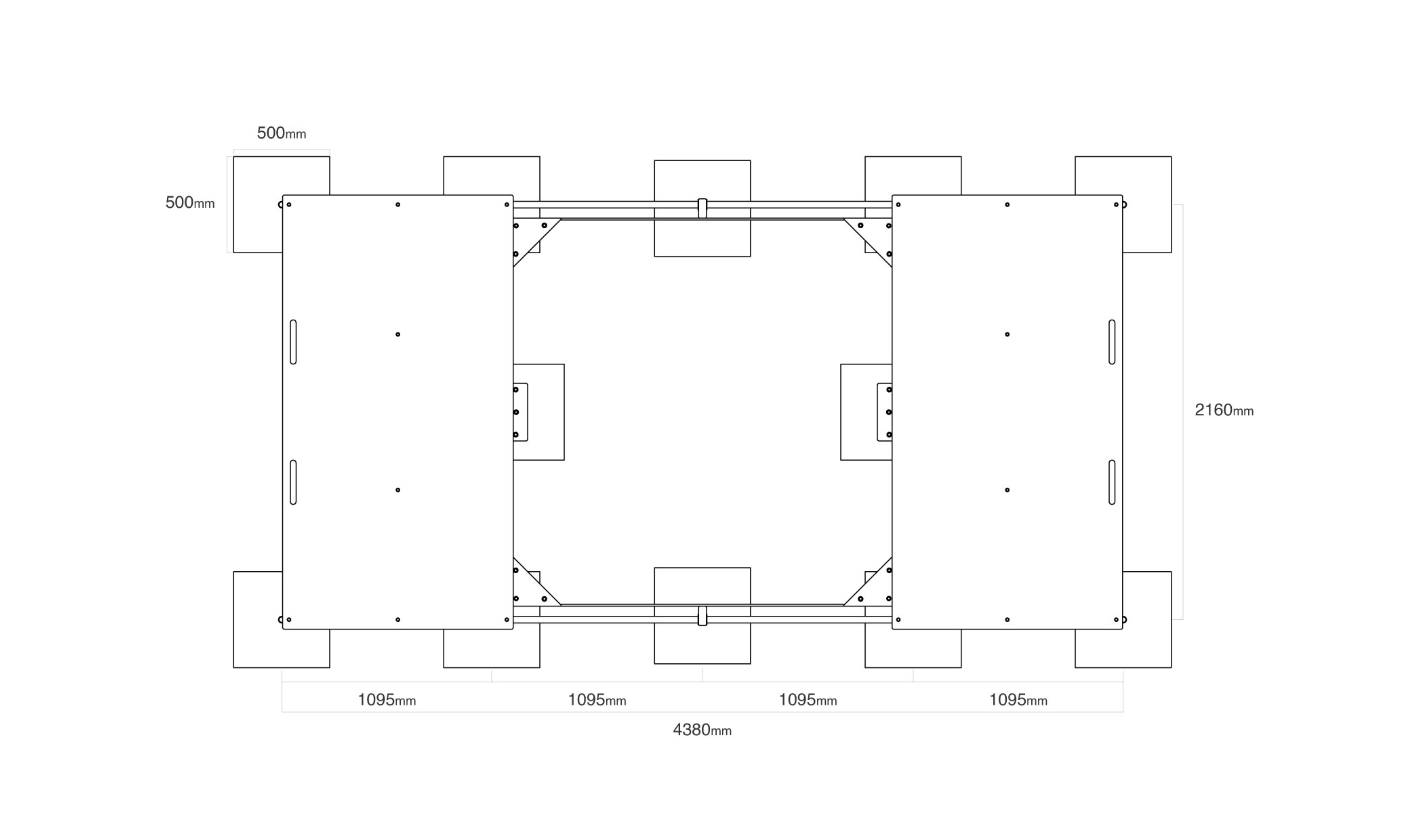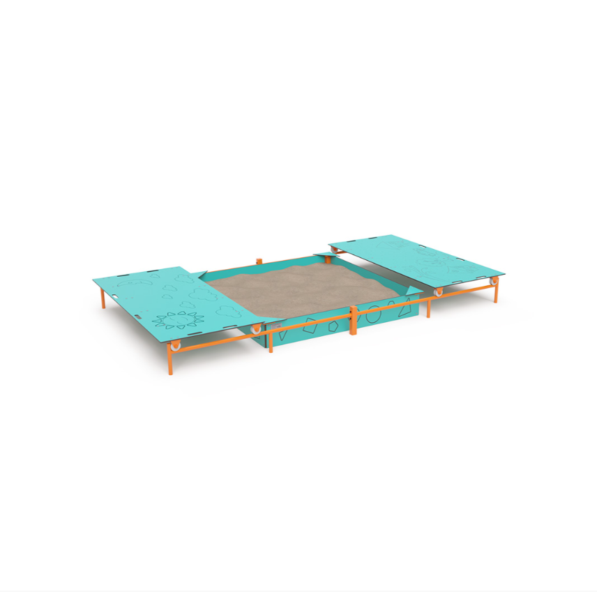 Bezúdržbové pískoviště o rozměrech 2 × 2 metry je po obvodu opatřeno lištou z 10 mm silného HPL materiálu, která zabraňuje přesypávání písku mimo pískoviště. Na bočnici je vyobrazen motiv s geometrickými tvary. Kryt pískoviště je vyroben z 15 mm silné HPL desky s dětským motivem. Díky nylonovým kolečkům a kolejnicím z ocelových trubek je možné kryt snadno posouvat. Konstrukce pískoviště a přístřešku je vyrobena ze zinkované a práškově lakované oceli a je navržena s ohledem na dlouhou životnost a maximální bezpečnost. Boční stěny, kryt i sedáky jsou z HPL materiálu, který je chemicky odolný, UV stabilní, netoxický, recyklovatelný a nelámavý – nehrozí tak zranění dětí ostrými hranami nebo úlomky. Veškeré spoje jsou nerezové a chráněné plastovými krytkami pro zvýšení bezpečnosti a životnosti.