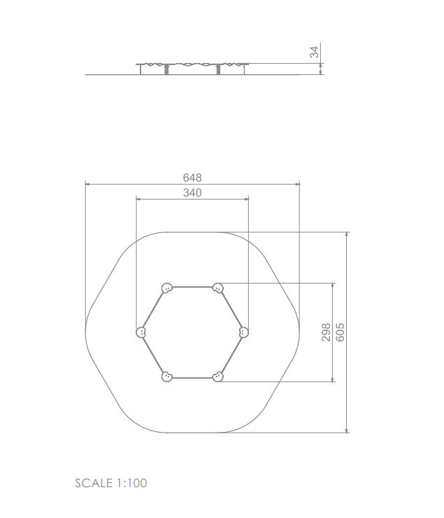 Díky šestiúhelníkovému tvaru působí toto pískoviště originálně a esteticky. Nabízí dostatek prostoru pro hru více dětí současně a díky mnoha stranám podporuje spolupráci – děti si mohou vytvořit různé „herní stanice“ po obvodu. Tvar připomíná krystal nebo včelí plást, což podněcuje fantazii a kreativní stavby.