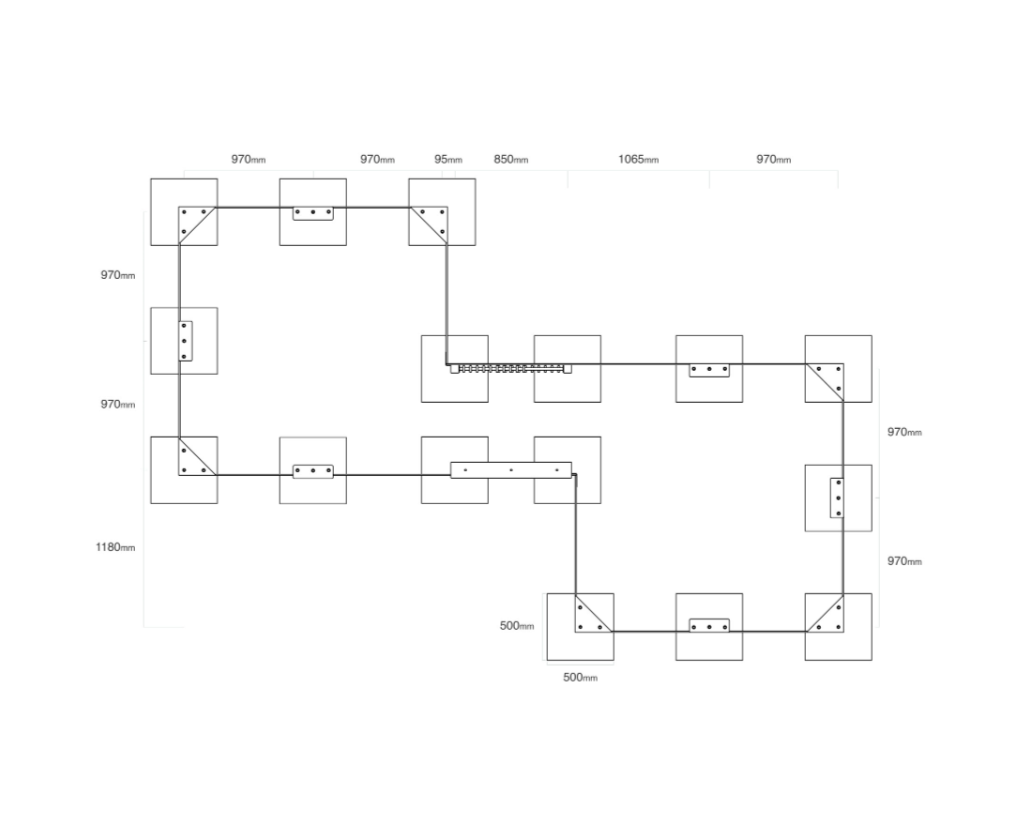 Všechny spoje jsou z nerezové oceli a jsou zakryty plastovými krytkami pro zvýšení bezpečnosti a životnosti prvku.