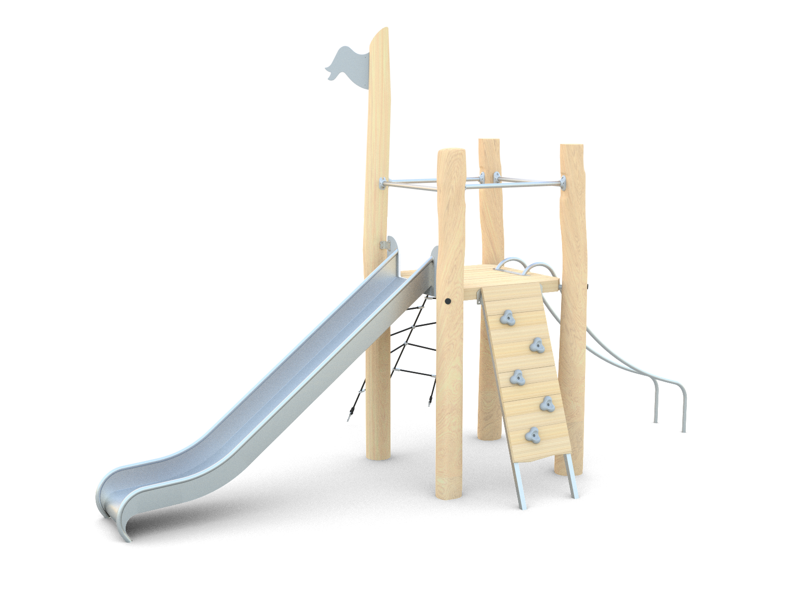 Víceúčelová herní věž se skluzavkou kombinuje lezení, šplhání i skluz a je určena až pro šest dětí. Nabízí pestrou pohybovou aktivitu a rozvoj motorických dovedností. Vhodná je pro veřejná hřiště i školní zahrady.