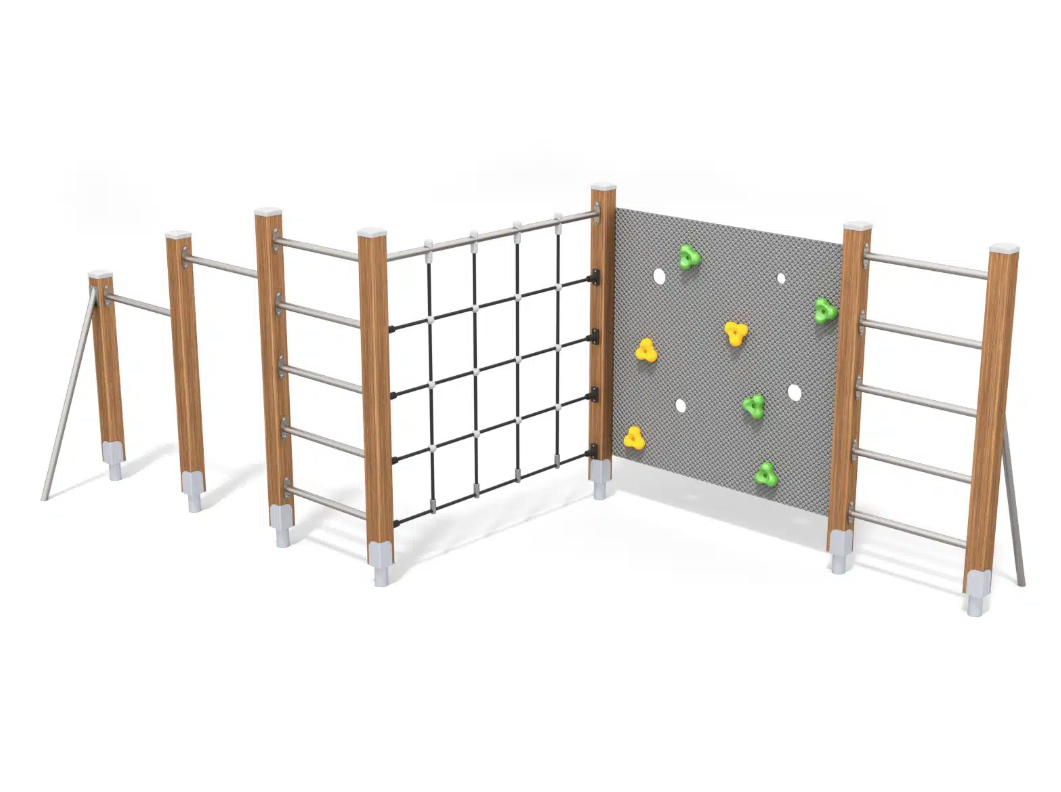 Kompaktní lezecká sestava je ideální pro rozvoj síly, obratnosti a koordinace dětí na hřišti i ve školních areálech. Díky kombinaci různých typů překážek nabízí pestrý pohyb a motivuje k aktivní hře. Přírodní vzhled dřevěných sloupů v kombinaci s moderními prvky dobře zapadne do jakéhokoliv venkovního prostoru. Konstrukce je navržena pro vysokou odolnost a dlouhou životnost při každodenním používání.
