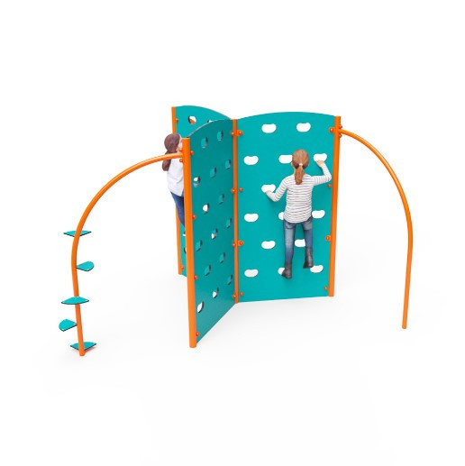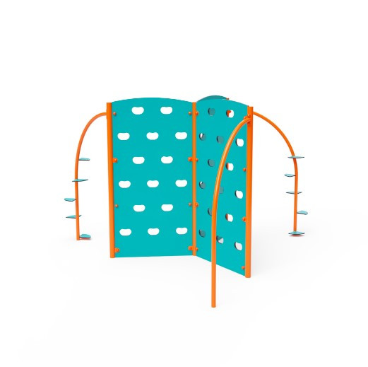 Trojstranná oboustranná lezecká stěna s lezeckými tyčemi a nášlapy. Ačkoli se může zdát, že tento herní prvek je určen spíše pro mládež a na běžné dětské hřiště se příliš nehodí, děti lezecké stěny milují. Konstrukce lezecké stěny je vyrobena z pozinkované oceli, která je ošetřena práškovou vypalovanou barvou. Stěna je navržena s ohledem na dlouhou životnost a bezpečnost. Stěny jsou z HPL materiálu a lezecké úchyty jsou vyřezány přímo do jejich plochy. Jako dopadová plocha je doporučeno použít zatravňovací rohož.