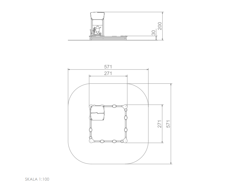 Bezpečnostní zóna: 571 x 571 cm