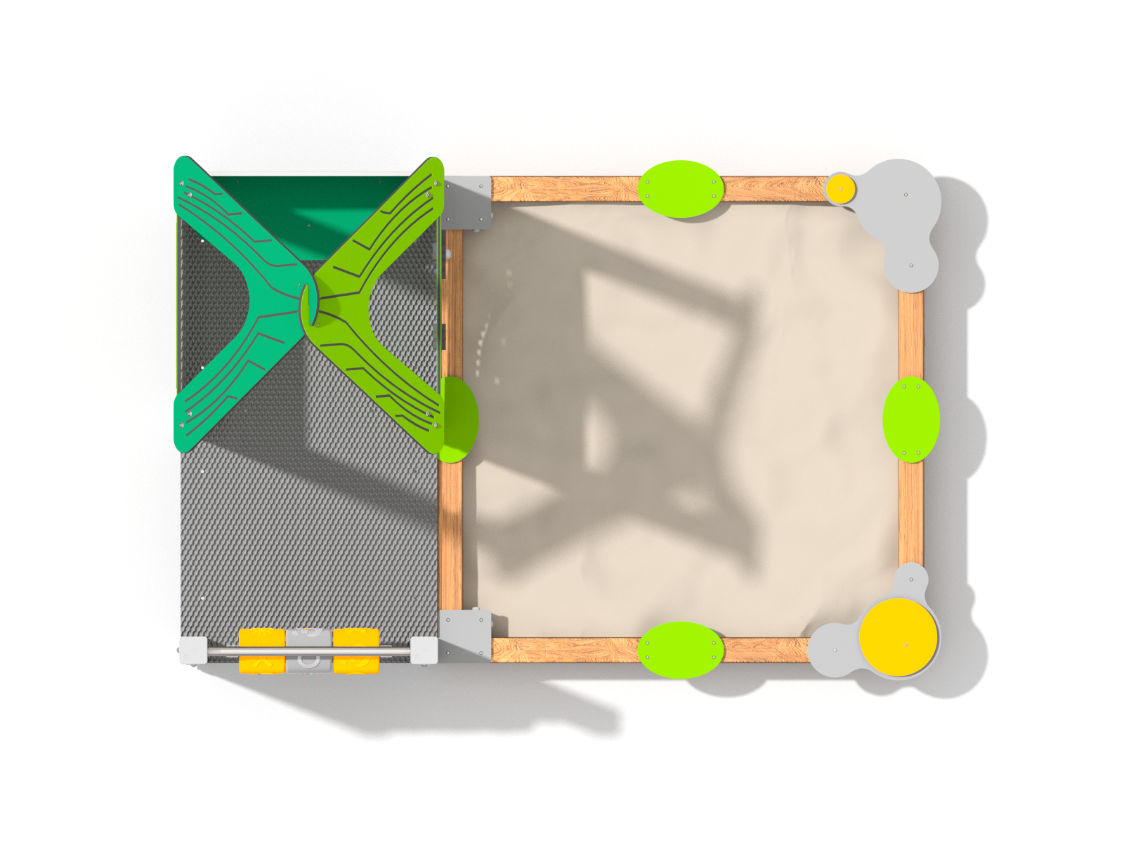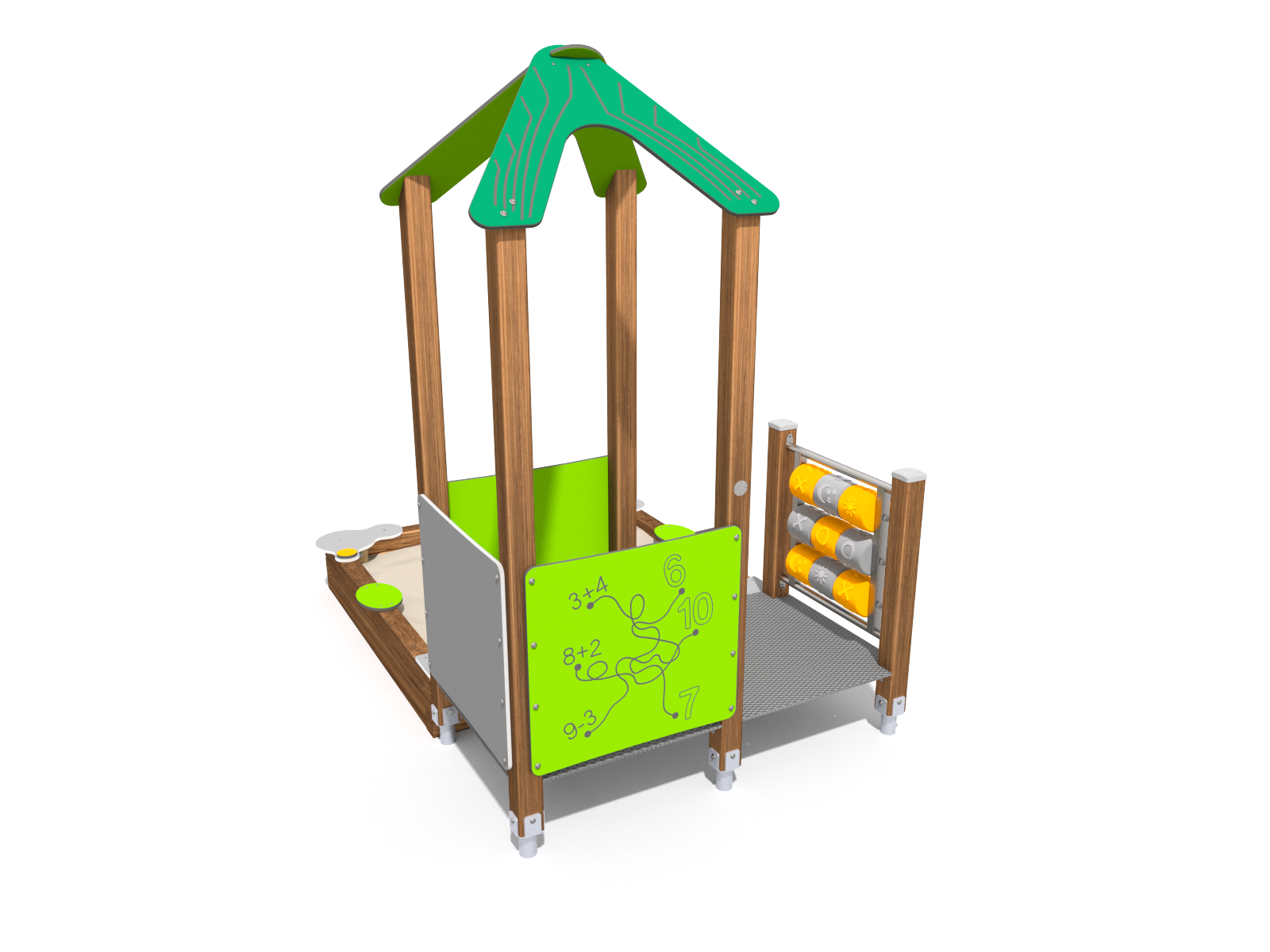 Jednoduchá, ale zajímavě řešená sestava tvořená vysokou věží s plošinou a pískovištěm. Sestava nemá skluzavku ani lezecké prvky – jejím hlavním herním bodem je rozměrné pískoviště. Děti zde mohou hrát s interaktivními prvky a zároveň si hrát v písku vedle věže, což vytváří nenásilnou kombinaci pohybu a tvořivé hry.