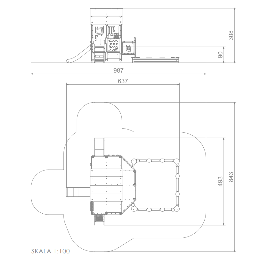 Ideální pro školky, menší hřiště nebo soukromé zahrady, kde se hledá kompaktní, bezpečné a funkčně rozmanité herní řešení. Kombinuje klidovou a interaktivní hru bez nutnosti náročného pohybu.