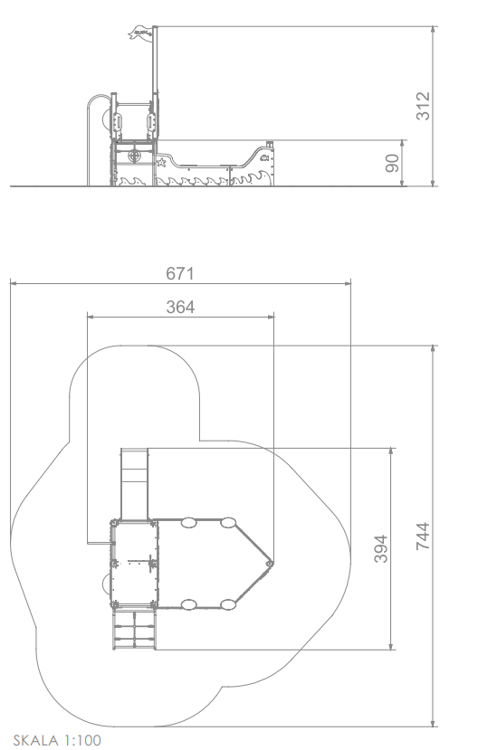Tato kompaktní sestava se stylovou věží, skluzavkou a pískovištěm je jako stvořená pro malé námořníky. Ze skluzavky se dá pohodlně sklouznout zpět k zemi. To nejzajímavější ale čeká dole – pod věží se nachází pískoviště s prodlouženou špičkou, která jasně evokuje příď lodi. Tento tvar nejen vizuálně zaujme, ale přímo vybízí k tematické hře a fantazii.