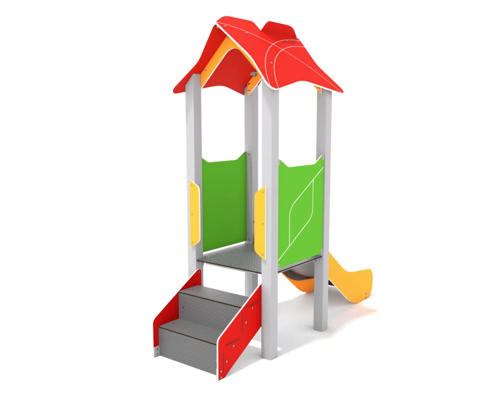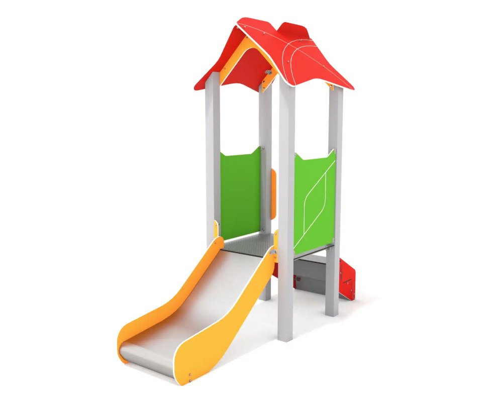 Domeček se skluzavkou je ideálním herním prvkem pro menší děti, který podporuje pohybovou aktivitu, rozvoj rovnováhy a fantazii. Je vybaven skluzavkou a zastřešeným domečkem, který slouží jako prostor pro hru a odpočinek. Díky kompaktním rozměrům je vhodný i pro menší hřiště.