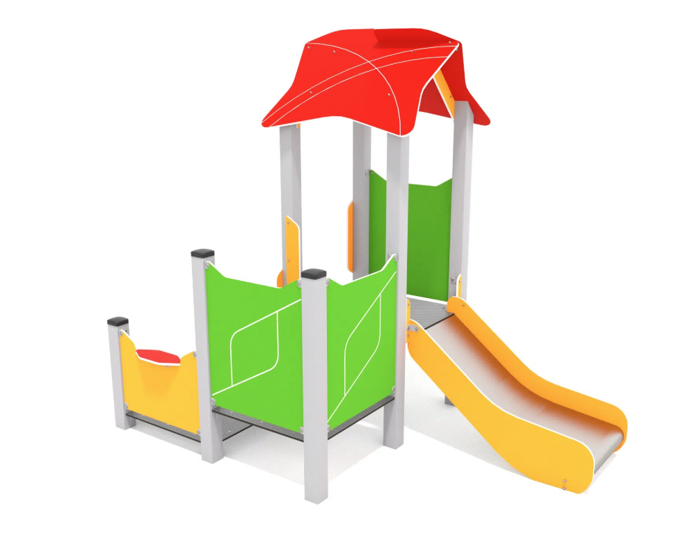 Tento větší domeček se skluzavkou je ideální pro větší dětská hřiště. Nabízí více prostoru na hraní a vyšší skluzavku, což zvyšuje atraktivitu pro starší děti. Design je bezpečný, funkční a vizuálně atraktivní.