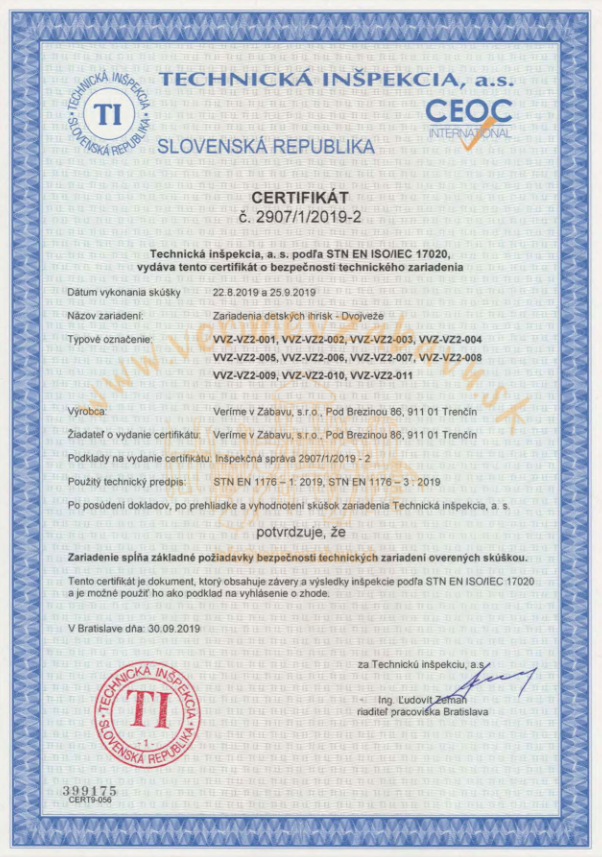 Kombinovaná věžová sestava VVZ-VZ2-010 je certifikována dle ČSN EN 1176
