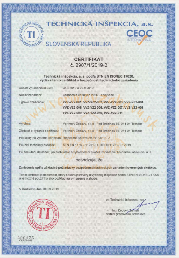 Kombinovaná věžová sestava VVZ-VZ2-011 je certifikována dle ČSN EN 1176