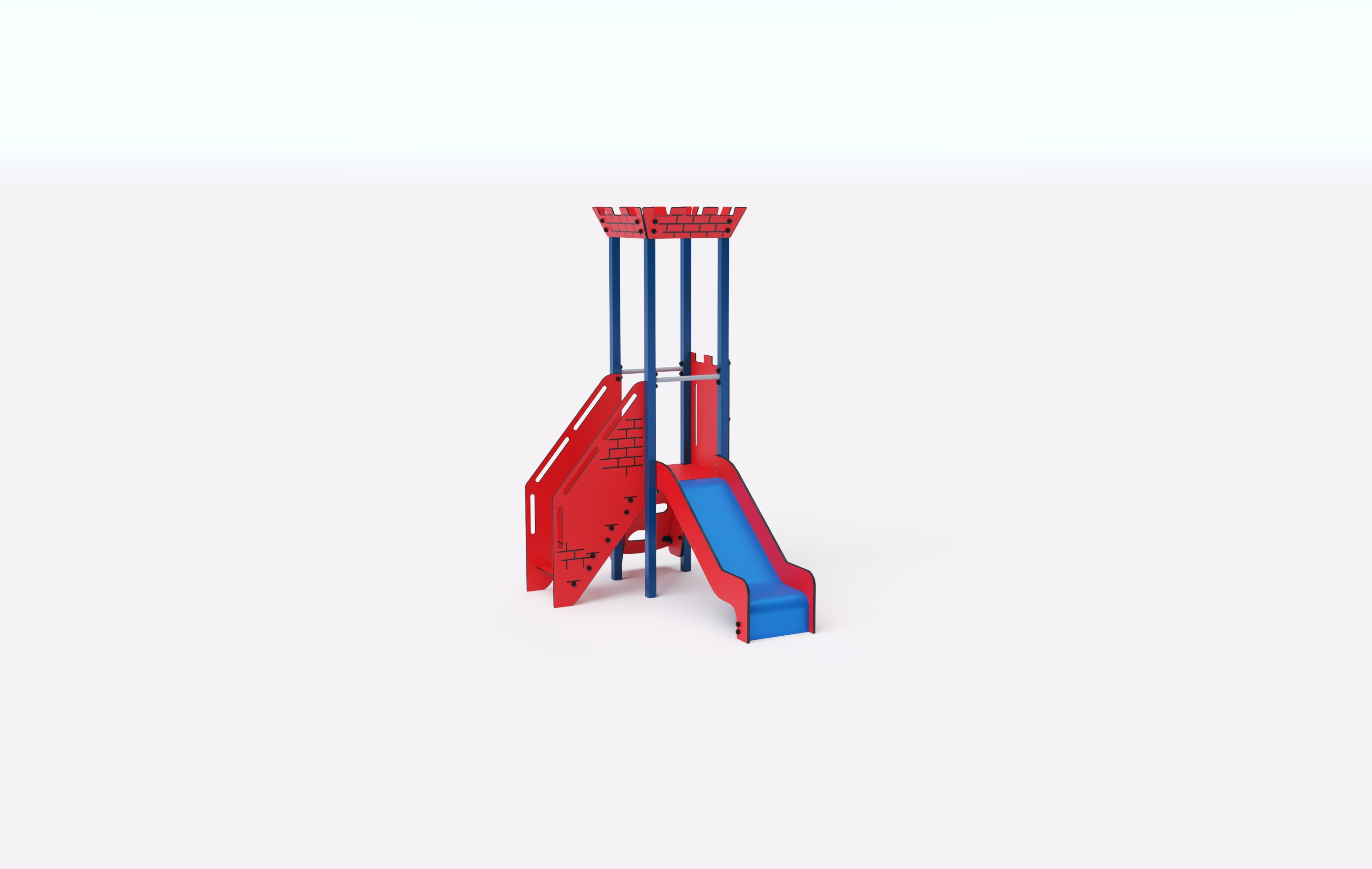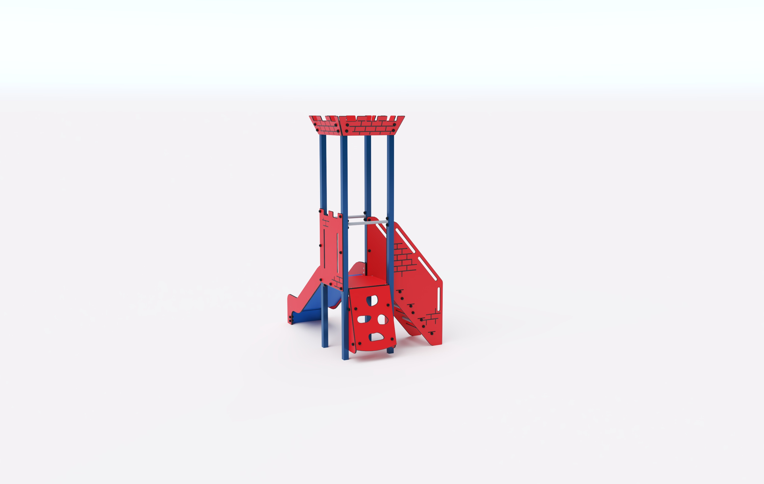 Věž s cimbuřím, na kterou děti vylezou po šikmé lezecké stěně nebo schodišťovém výstupu a dolů se mohou spustit po skluzavce. Tyrkysovo-oranžový design láká ke hře už z dálky. Ocelová konstrukce je odolná vůči povětrnostním vlivům díky žárovému zinkování a lakování odolnou práškovou barvou. Použitý HPL materiál je chemicky odolný, odolný vůči UV záření – stálobarevný, netoxický, recyklovatelný a nelámavý. Nehrozí tak poranění dětí ostrými hranami nebo úlomky. Všechny spoje jsou nerezové a zakryté plastovými krytkami pro zvýšení životnosti a bezpečnosti.