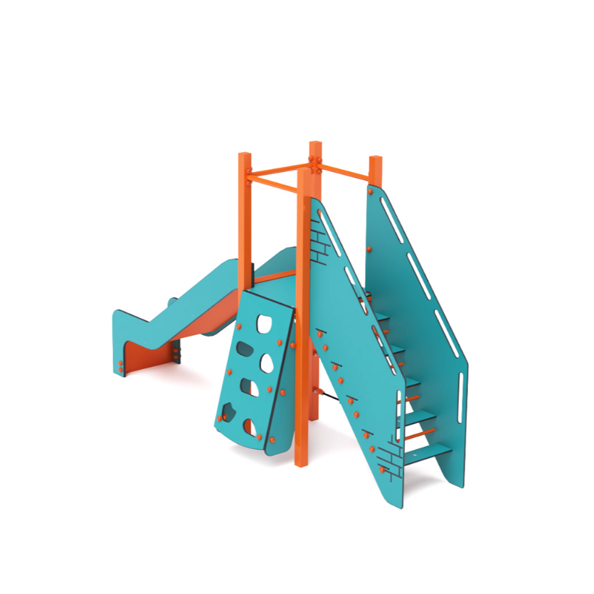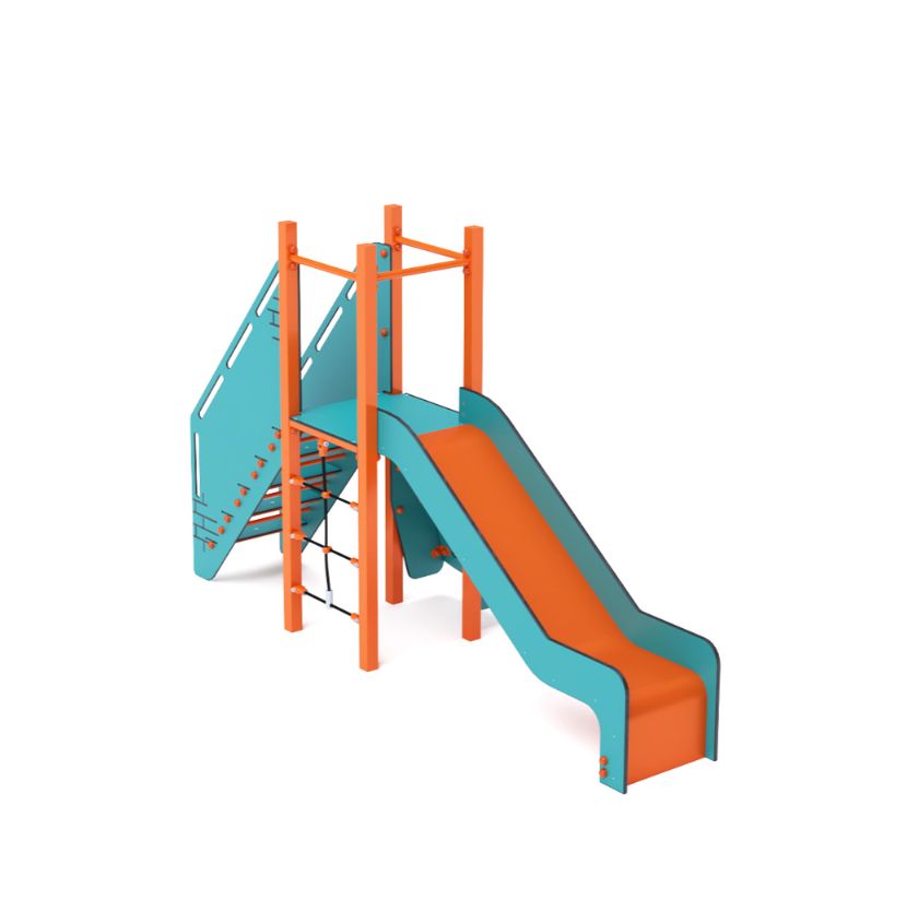 Nízká věž, na kterou děti vylezou po kolmé lanové stěně, šikmé lezecké stěně nebo po schodišťovém výstupu. Dolů se mohou sklouznout po skluzavce. Tyrkysovo-oranžový design láká ke hře už z dálky. Ocelová konstrukce je odolná vůči povětrnostním vlivům díky žárovému zinkování a lakování odolnou práškovou barvou. Použitý HPL materiál je chemicky odolný, odolný vůči UV záření – stálobarevný, netoxický, recyklovatelný a nelámavý. Nevzniká tak riziko poranění dětí ostrými hranami nebo úlomky. Všechny spoje jsou z nerezové oceli a zakryté plastovými krytkami pro zvýšení životnosti a bezpečnosti.
