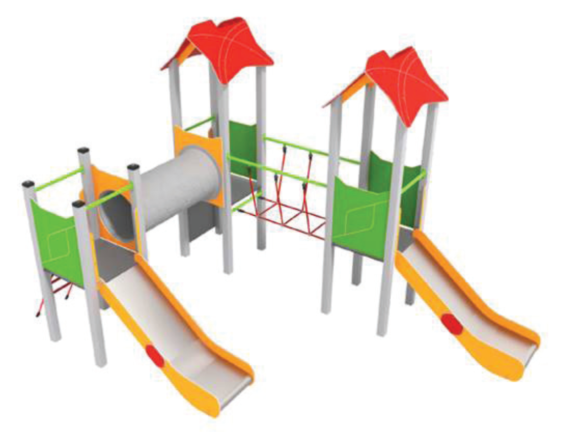Herní sestava kombinuje více herních prvků do jednoho celku – nabízí lezecké části, skluzavky, lanový most, tunel a další prvky podporující koordinaci a fyzickou aktivitu dětí. Vhodná pro školky, školy i veřejná hřiště.