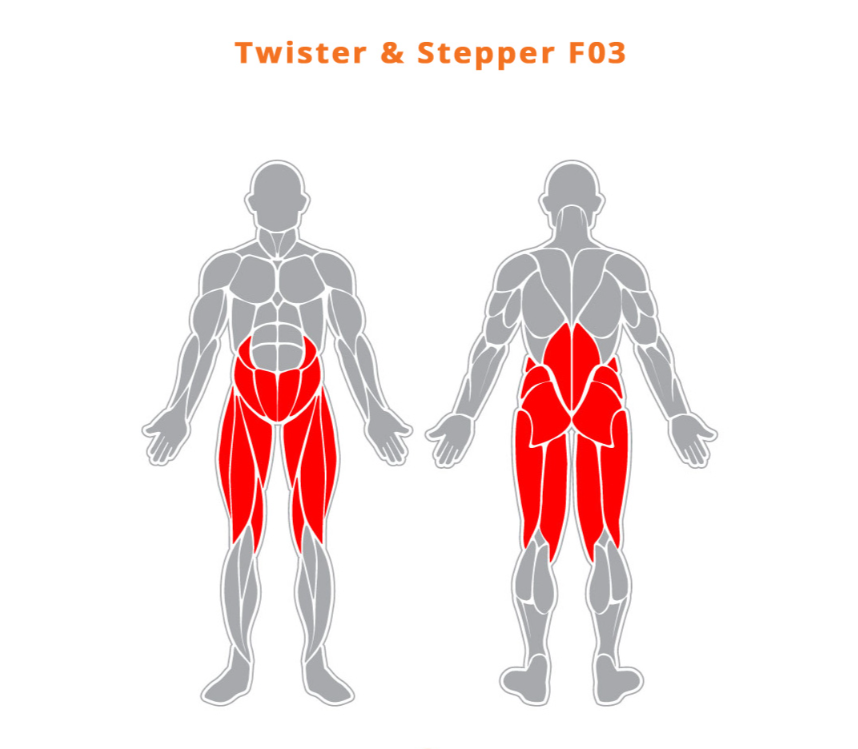 Twister a Stepper slouží k posílení svalů boků a bederní části páteře. Posílení těchto svalů napomáhá ke správnému držení těla. Cvičení na stepperu posiluje dolní končetiny, formuje hýžďové svaly a linii boků. Minimální plocha pro umístění zařízení musí mít rozměry 4 480 × 3 790 mm.