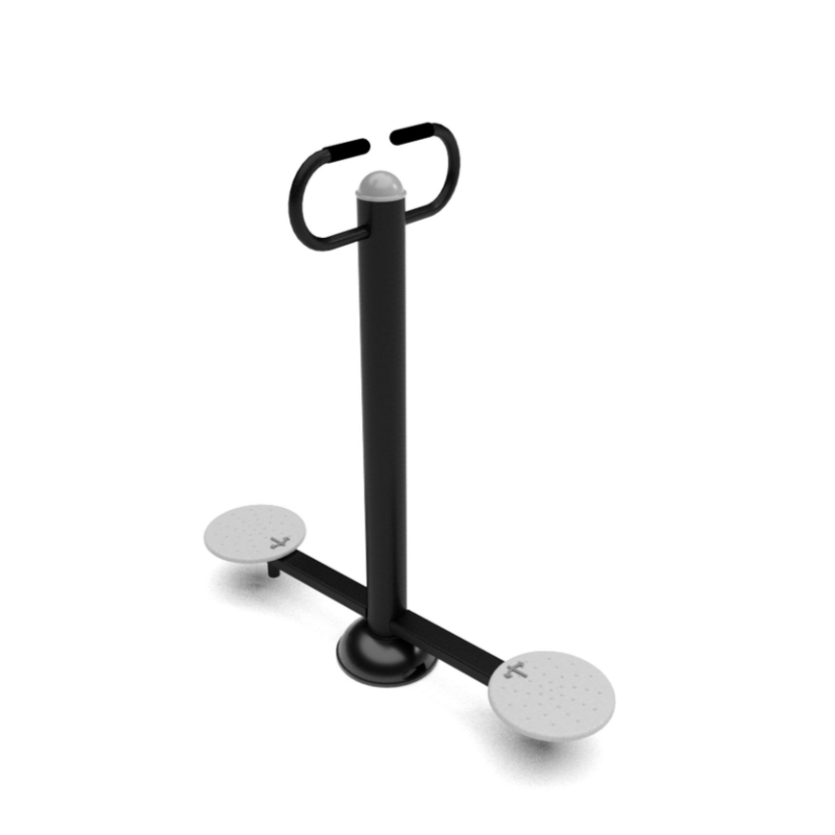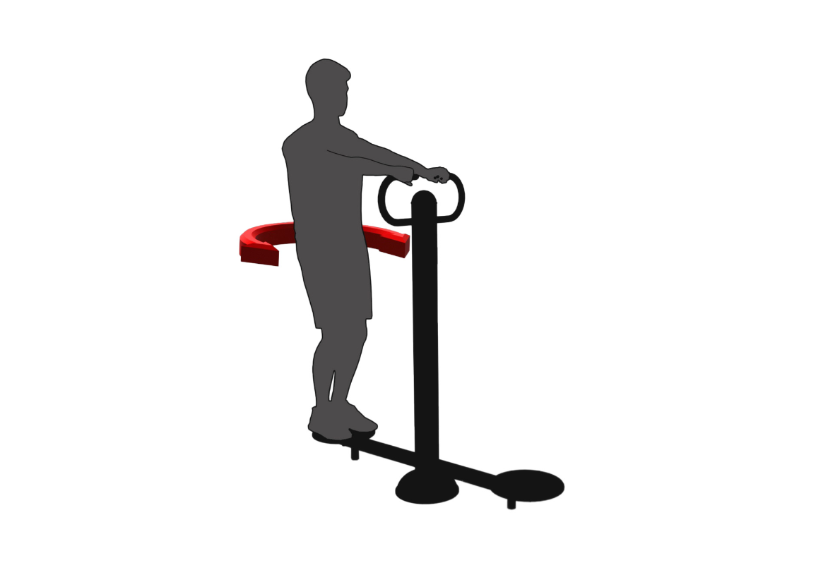 Jak cvičit – oběma rukama se pevně chyťte madla, postavte se oběma nohama na rotační plošinu a otáčejte nohama ze strany na stranu pomocí břišních svalů, přičemž zůstaňte stát rovně a vzpřímeně. Nepohybujte se příliš prudce. Pohyby provádějte pomalu a kontrolovaně. Počet opakování zvyšujte postupně dle zlepšující se kondice.