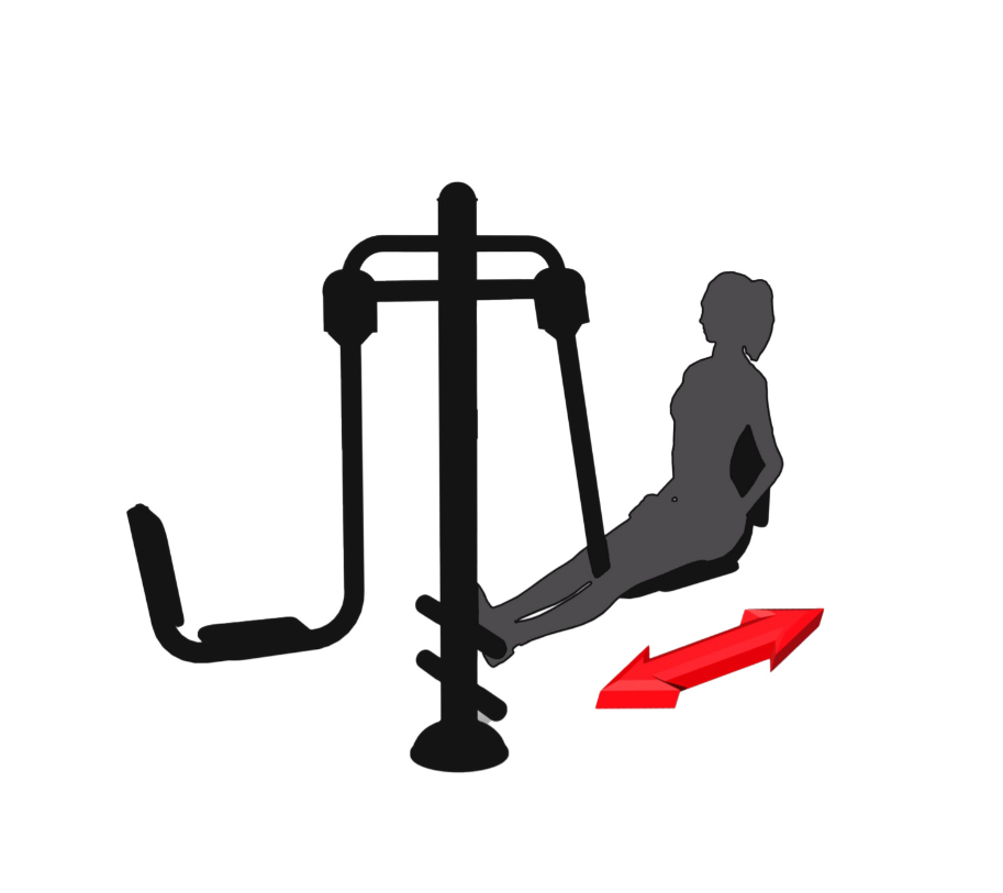 Jak cvičit – posaďte se vzpřímeně s narovnanými zády. Umístěte obě nohy na podložky před sebou a položte si ruce na stehna pro větší stabilitu. Tlačte nohama, ale dávejte pozor, abyste je nevystřelili úplně. Následně pomalu přitahujte nohy zpět do výchozí, resp. startovní polohy. Pohyby provádějte pomalu a kontrolovaně. Počet opakování postupně zvyšujte podle zlepšení kondice.