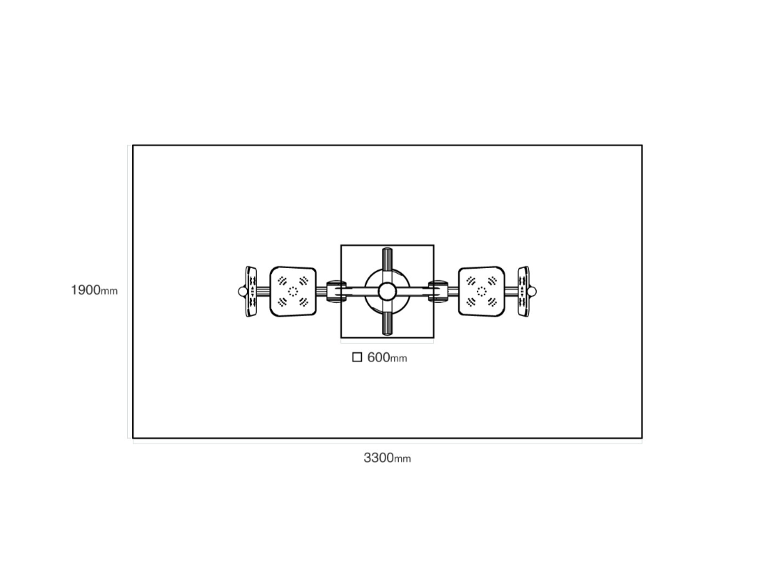 Bezpečnostní zóna: 1,9 × 3,3 m