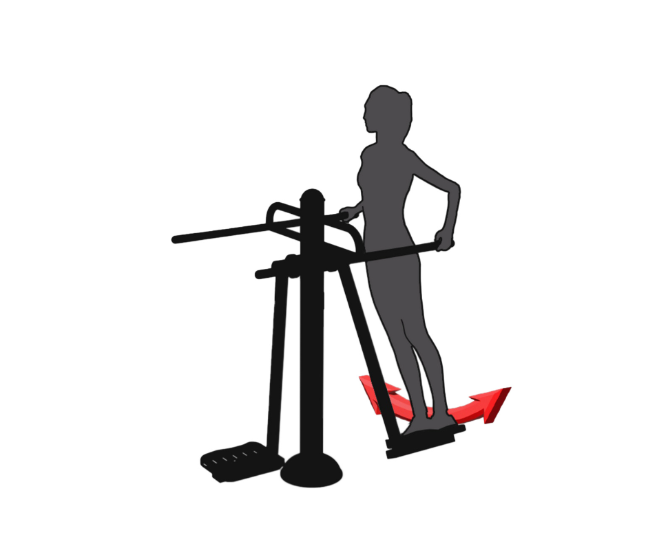 Jak cvičit – uchopte držadla, zapřete se, přičemž horní část těla udržujte bez pohybu. Umístěte obě nohy na kyvadlovou podložku. Jemně houpejte boky ze strany na stranu, přičemž horní část těla zůstává v klidu. Houpejte se jen do výšky, která je pro vás příjemná a pohodlná. Během cvičení provádějte pomalé a kontrolované pohyby. Počet opakování postupně zvyšujte podle zlepšování kondice.