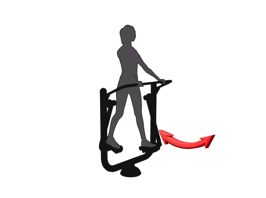 Jak cvičit – pevně uchopte oběma rukama podpůrné držadlo a postavte se oběma nohama na pedály. Střídejte tlak nohou vpřed a vzad do pohodlné vzdálenosti. Během cvičení provádějte pomalé, plynulé a kontrolované pohyby. Počet opakování postupně zvyšujte podle zlepšování kondice.