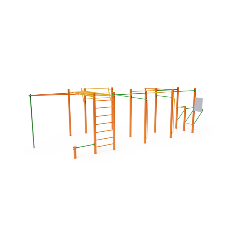 Workout je stále populárnější způsob cvičení v exteriéru, při kterém se využívá hlavně hmotnost vlastního těla. Cvičení je pestré díky prostředí na čerstvém vzduchu a široké škále cviků, které workoutové prvky a sestavy umožňují. Prospívá tak nejen fyzické, ale také psychické pohodě. Středně velká sestava s několika horizontálními hrazdami různé výšky, dvěma vertikálními hrazdami a nakloněnou žebřinou je doplněna dvojitým bradlem a nízkou hrazdou, horizontálním a vertikálním žebříkem.
