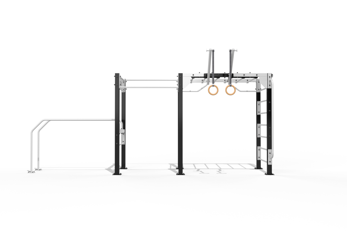 GORILLA M je nejefektivnější workoutovou konstrukcí z naší outdoorové nabídky. Nabízí velké množství různých komponentů na velmi kompaktní ploše a zároveň je díky volitelným rozšířením opravdu všestranná. věšák na kruhy a vertikální bradlo. Je tak vhodná pro street workout, funkční trénink, freeletics, klasický fitness, strečink, freestyle a mnoho dalších druhů tréninku.