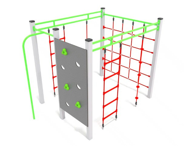 Robustná a bezpečná lezecká konštrukcia určená pre deti vo veku 3 až 14 rokov, ideálna pre verejné ihriská a rekreačné areály. Konštrukcia je vyrobená z odolnej ocele S235JR s práškovou povrchovou úpravou, ktorá zaisťuje dlhú životnosť a odolnosť voči poveternostným vplyvom. Lezecké steny sú vybavené protišmykovými doskami a farebnými chytmi z kombinácie kameniva a polyesterových živíc. Konštrukcia obsahuje aj pevné laná s oceľovým jadrom pre zvýšenie bezpečnosti a stability.