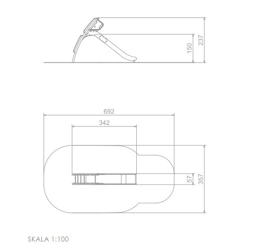 Moderná šmykľavka určená pre deti vo veku od 3 do 12 rokov. Vďaka svojej kompaktnej konštrukcii (342 x 57 cm) je vhodná ako na menšie ihrisko, tak do väčších verejných priestorov.